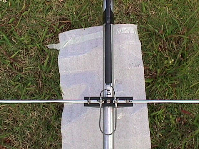 ![]() Close-up of driven element, one-to-one balun and the hairpin match |